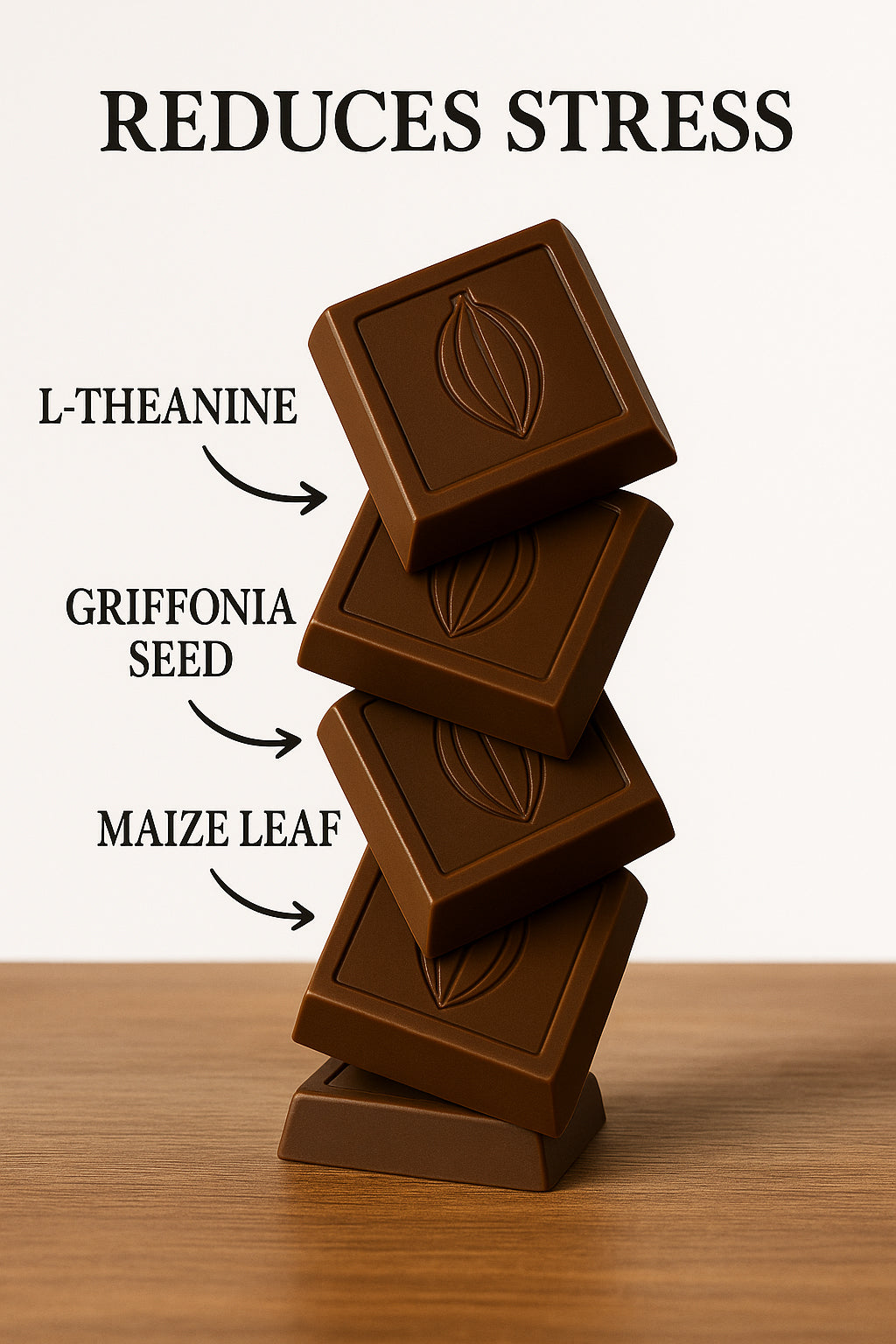 Our 85% dark chocolate, sweetened with gut-friendly xylitol, helps boost serotonin during the day and melatonin production at night—meaning calmer and brighter moods, less stress, and more restful, effortless sleep. A better life without synthetic sleep aids or sugar spikes.